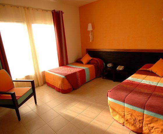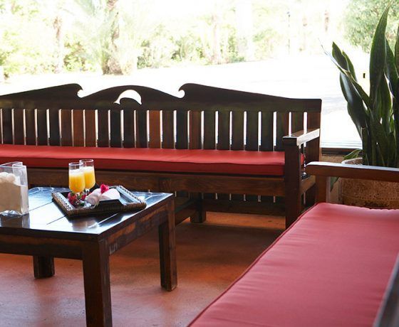 Séjournez dans une chambre supérieure avec vue sur des jardins exotiques. L'intérieur aux tons rouge et orange est chaleureux et confortable.